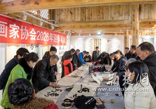 荆楚网(湖北日报网)讯(通讯员 范学勇)1月17日,竹山县城关镇南门登爽园内的竹山书画院暖意融融,墨香弥漫。县书画家协会在此举办2026年迎春书画笔会,三十多位会员齐聚一堂,以笔寄情,以墨抒意,以“马”为题展开创作,共同迎接即将到来的丙午马年新春佳节。