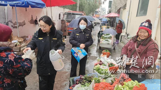 1月19日,丹江口市六里坪镇综合执法中心为在寒风中坚守的摊贩送上热水与关怀。通讯员 供图