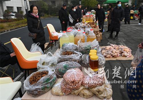 荆楚网(湖北日报网)讯(通讯员 杨露)1月31日,湖北省十堰市公安局警训基地食堂前广场热闹非凡,一场帮扶农副产品展销会在此温情启幕。来自茅箭区大川镇大川村的村民,带着自家种养、手工制作的原生态农副产品参展,十堰公安民警及家属纷纷前来选购,用实际行动助力村民增收。