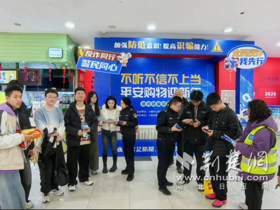 荆楚网(湖北日报网)讯(通讯员 宋建彬 张雪婧)春节临近,年货采购进入高峰,电信网络诈骗也进入高发期。2月7日下午,由十堰市反诈中心牵头,联合十堰市公安局茅箭区分局,在华悦城、环球港、五堰步行街、六堰武商MALL四大商圈同步开展"反诈宣传春天行动",将安全防范知识融入群众日常购物场景。