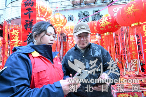 荆楚网(湖北日报网)讯(通讯员 陈珊珊 程燕)新春临近,年味渐浓。2月11日,十堰郧西春联福字集市热闹非凡,红彤彤的春联、金灿灿的福字挂满摊位,往来群众忙着选购年货,一派喜庆祥和的景象。当天,国家电网湖北电力(十堰郧西)楚天星火共产党员服务队走进集市,为商户开展“网上国网”APP实操教学,同步讲解节前安全用电知识,用精准服务为商户新春经营保驾护航,让年味里多了一份电力温暖。