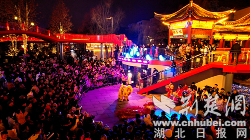 “春节期间,我们推出非遗文艺汇演、智能机器人舞蹈演绎、新年祈愿孔明灯、银票兑福利、特色篝火晚会、醒狮花灯、集福章、仙女仙君共游天街等活动,特别受到年轻人的青睐。”湖北七夕天街文旅商业运营管理有限公司总经理秦波介绍,八大特色活动相映成趣,街区每天上演62场传统杂技与民俗表演,线上线下同步精彩,为游客带来视听盛宴。