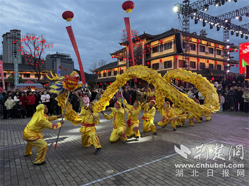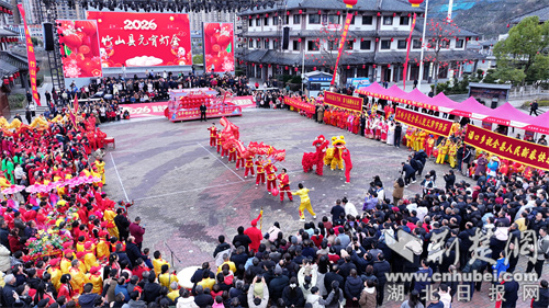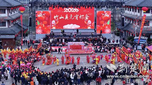 荆楚网(湖北日报网)讯(通讯员 但兴竹 李健 章伟)3月2日,农历正月十四,湖北竹山县桃花源街区从早到晚都泡在喜庆里。舞龙的翻腾、腰鼓的铿锵、孩子们的欢笑,还有夜晚荧光夜跑拉出的光影长河,把这座小城的元宵节闹得热气腾腾。