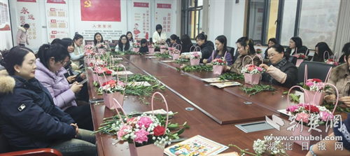 荆楚网(湖北日报网)讯(通讯员 孙楠 孙颖)为庆祝“三八”国际妇女节,丰富女教职工精神文化生活,增强团队凝聚力,3月6日,十堰市柳林小学天津路第一校区开展“情暖三月,花漾芳华”插花活动,全体女教职工齐聚一堂,共赴这场花艺之约。