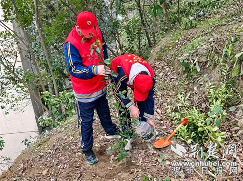 荆楚网(湖北日报网)讯(通讯员 张丰刚)春风吐绿万物新,正是植树好时节。为深入践行绿色发展理念,弘扬志愿服务精神,3月12日,十堰市张湾区车城路街道艳湖社区联合湖北汽车工业学院光电工程学院、新能源学院青年志愿者、十堰市东风41学校学生在辖区三峡路、云南路沿线开展了“相约春天,共植希望”植树节主题活动。