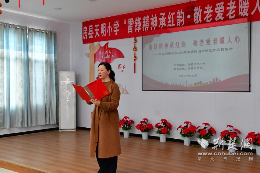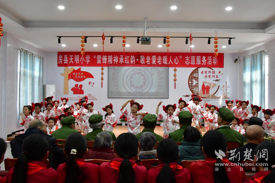 荆楚网(湖北日报网)讯(通讯员 陆婧)为进一步加强未成年人思想道德建设,弘扬中华民族尊老、敬老、爱老的传统美德,培育学生的感恩意识与社会责任感 ,3月13日下午,十堰市房县天明小学师生走进房县光荣院,开展了“”雷锋精神承红韵·敬老爱老暖人心”主题志愿服务活动,为孤寡老人送去关爱与温暖。