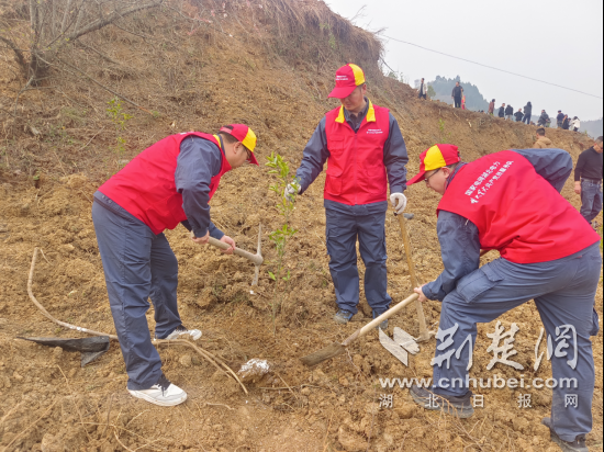荆楚网(湖北日报网)讯(通讯员 付静)3月13日上午,国网湖北电力楚天星火(十堰郧县)共产党员服务队在第46个植树节期间,走进柳陂镇青龙山开展义务植树活动,以实际行动践行绿色发展理念,为郧阳大地添新绿、筑生态。