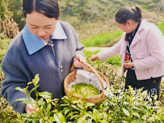荆楚网(湖北日报网)讯(通讯员 刘港慧)春风十里茶飘香,又是一年采茶忙。3月22日,走进竹溪县汇湾镇青岩沟村茶山,连绵起伏的茶园绿意盎然、生机勃勃。村民们腰挎竹篓、指尖翻飞,抢抓农时采摘今春第一抹嫩绿,勾勒出一幅动人的春日丰收图景。