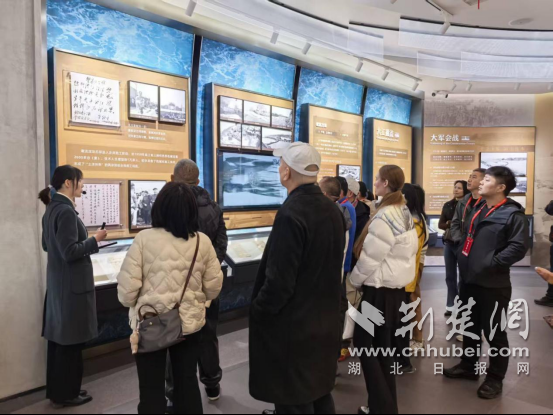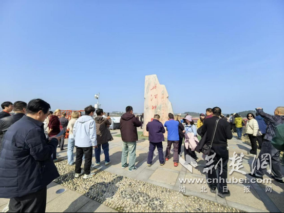 在丹江口工程展览馆,旅行商们通过图文史料与沙盘模型,系统了解了丹江口水利枢纽作为“国之重器”的建设历程及其在南水北调中线工程中的核心作用。随后登上坝顶,面对烟波浩渺的“亚洲天池”,聆听讲解员讲述库区移民奉献与水源地生态保护的动人故事,旅行商们在感受工程磅礴气势的同时,更对“一泓清水永续北上”背后蕴含的奉献精神与生态智慧有了深刻体悟。