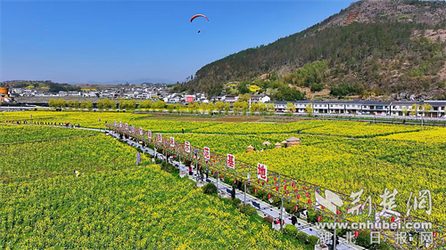 荆楚网(湖北日报网)讯(通讯员 洪玲 王闯)春风拂过秦巴山,金色花海醉游人。3月27日上午,竹溪县2026醉美赏花季活动在中峰镇贡米基地正式拉开帷幕。本次赏花季以“游醉美花海、赏云端竹溪、品武陵戏韵”为主题,将持续至5月中旬。