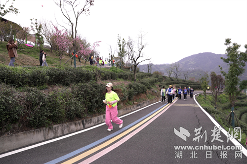 荆楚网(湖北日报网)讯(通讯员 但兴竹)三月的刘家山,春茶吐翠,晚樱缤纷。3月29日,“武当山茶·竹山硒茶”第四届茶旅文化月春茶开采活动在竹山县城关镇刘家山生态茶园举行,300余名徒步爱好者穿行于层层叠翠的茶垄之间,在春日暖阳中开启了一场别开生面的茶园定向徒步挑战赛。这场以茶为媒、以体育搭台的春日之约,已是竹山连续第四年在刘家山举办茶旅徒步活动。从最初的尝试探索到如今的品牌成型,山水茶园徒步正成为竹山茶旅融合的一张亮丽名片。