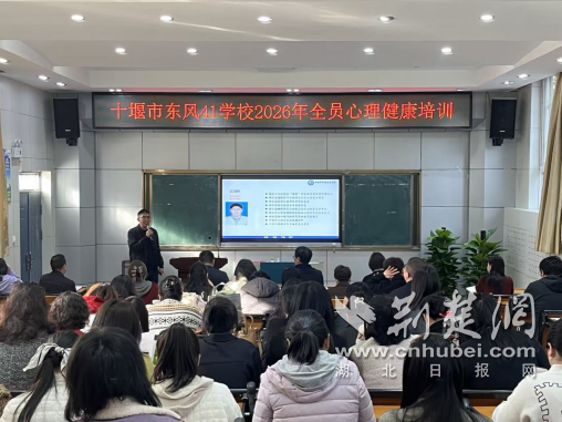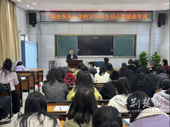 荆楚网(湖北日报网)讯(通讯员 柳瑜)3月31日,十堰市东风41学校组织全员心理健康培训,特邀十堰市中西医医院精神科主任、国家二级心理咨询师成加林主讲《如何守护中小学教师心理健康》讲座。