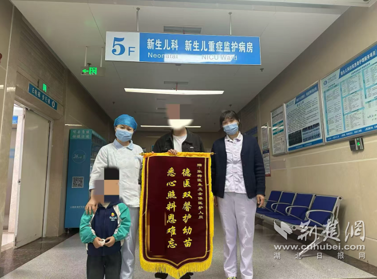 荆楚网(湖北日报网)讯(通讯员 王金敏)因母亲孕期“臀位、胎儿窘迫、脐带扭转”等多重高危因素,紧急剖腹产后,患儿乐乐(化名)又面临呼吸浅促、肺炎、脑病等多重生命危机,体重仅2400克,被紧急转入十堰市人民医院新生儿科。14天里,他先后经历呼吸急促、血压和血氧骤降等生死关口,最终在医护团队的精准救治与日夜守护下,成功闯过重重险关,顺利出院。孩子父亲李先生(化姓)含泪送上锦旗:“感谢你们,给了孩子第二次生命!”