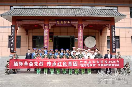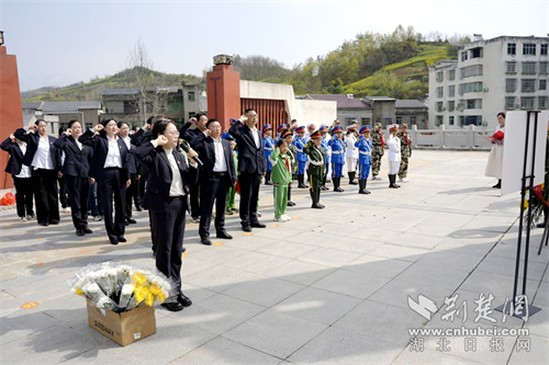 荆楚网(湖北日报网)讯(通讯员 叶文江 毛文兵)松柏凝翠寄哀思,丰碑永铸励初心。4月3日,竹溪县长安学校党支部组织党员教师、国旗班队员及少先队员代表,前往县河镇锣鼓洞革命烈士陵园、竹山县擂鼓镇历史展览馆,开展“缅怀革命先烈传承红色基因”清明祭英烈主题实践活动。
