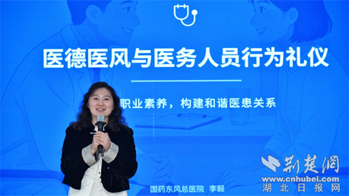 国药东风总医院党群工作部部长李毅讲授了《医德医风与医务人员行为礼仪》,该课程系统阐述了医德医风建设的根本性意义,引导基层医务人员筑牢职业道德底线,弘扬崇高职业精神;详细讲解了医务人员在诊疗服务、医患沟通、同事协作等场景中的行为准则,促使基层医务人员将优良医德内化于心、职业礼仪外化于行,构建和谐互信的医患关系、增强群众就医获得感。