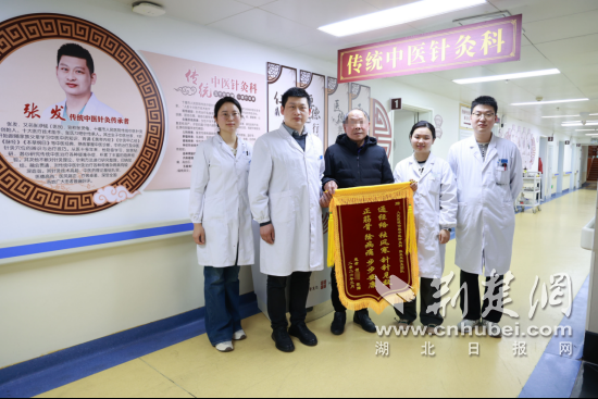 荆楚网(湖北日报网)讯(通讯员 马婷婷)“通经络,祛风寒,针针见效;正筋骨,除病痛,步步安康。”近日,50多岁的贺先生专程从十堰市丹江口市凉水河镇赶到十堰市人民医院传统中医针灸科,将一面饱含深情的锦旗送到张发医生及其团队手中,感谢他们用短短的几次针灸与特色中药火罐的调理,让困扰他十几年的顽固腰痛迎来了根本性好转。