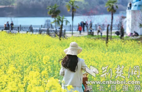 沿着堵河而行,方滩乡油菜花肆意盛放,金黄花海与碧水青山相映成趣,宛如一幅流动的油画。