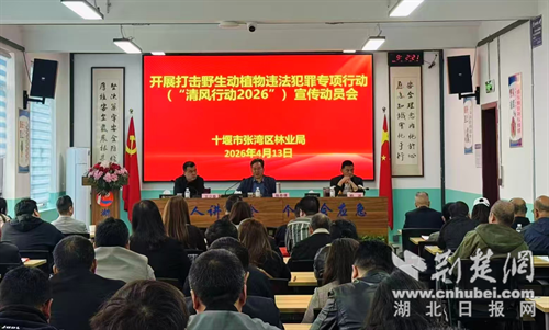 荆楚网(湖北日报网)讯(通讯员 吴雪君)4月13日,张湾区林业局在湖北雄泰安全技能培训中心开展“清风行动 2026”宣传动员活动,面向辖区企业和群众代表开展普法宣传,明确全面禁止非法捕猎、伤害野生动植物,同时强调禁止采挖野生兰花等保护野生植物,守护秦巴山区生态安全。