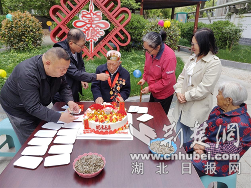 荆楚网(湖北日报网)讯(通讯员 孟小娇 周娟娟)4月15日上午,十堰市张湾区红卫街道燕沟社区组织社区工作人员,带着满心的喜悦和真诚的祝福来到辖区王爷爷的家中,为这位亲历烽火岁月的老人庆祝100岁生日,用贴心服务传递社区暖意,践行尊老敬老传统美德。