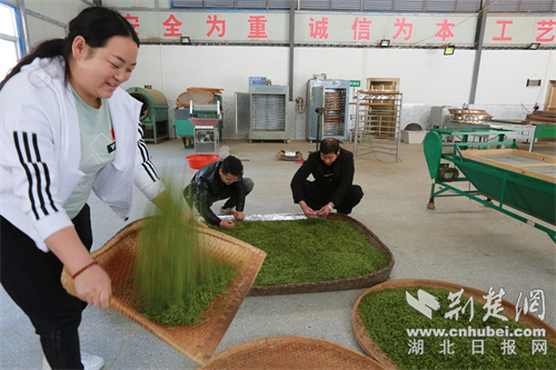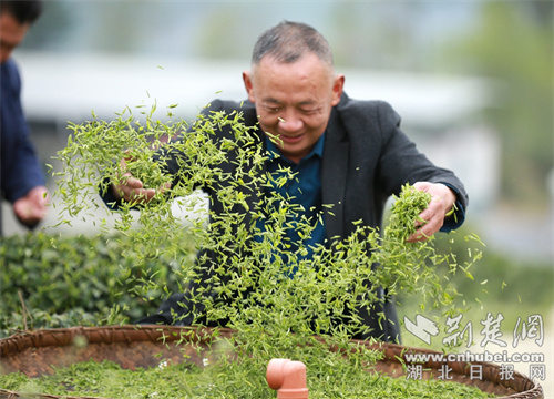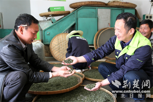 荆楚网(湖北日报网)讯(通讯员 向继华)4月18日上午10点,竹山县上庸镇大泉山村,湖北堵河源茶叶有限公司的加工车间内,人声与机械声交织。空气中弥漫着清新的茶香,工人们正熟练地将新鲜茶叶送入生产线。公司董事长冯家庆穿梭其间,不时俯身查看茶叶成色,忙碌中透着喜悦。