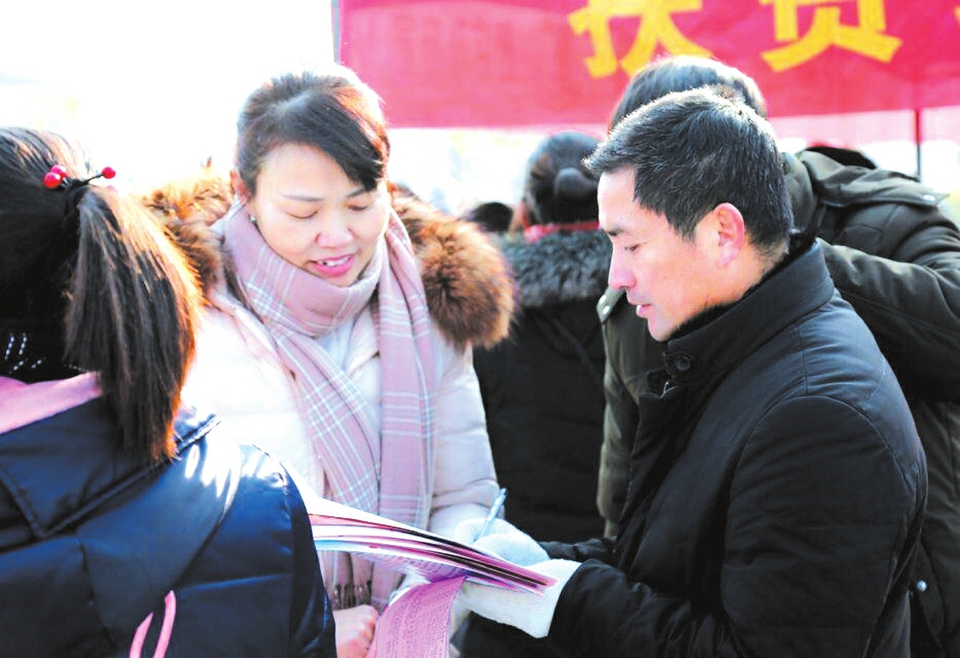 “扶贫攻坚,党心所向,民心所依”“精准扶贫,就业先行”……在招聘会现场,记者看到一幅幅大红标语,使整个招聘会充盈着暖暖的关怀。
