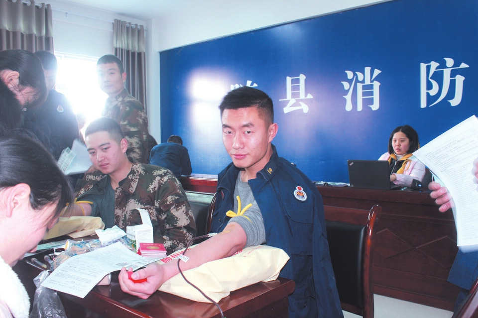 近期我市血站库存血液紧张,为了保证医院临床用血需要,近日,市献血办与随县消防中队联系,组织动员战士参加应急无偿献血,为保障医院临床患者用血奉献自己的一份爱心。(随州日报通讯员徐勇斌李佳军摄)