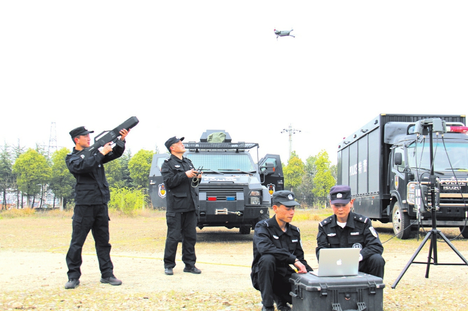 4月3日,为适应新形势下安保警卫、应急处突、维稳平暴需要,随州特警开展无人机反制演练,与民用无人机形成实战对抗。(随州日报通讯员程昆、刘智明摄)