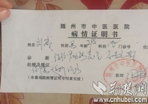 刘威病情证明。通讯员供图