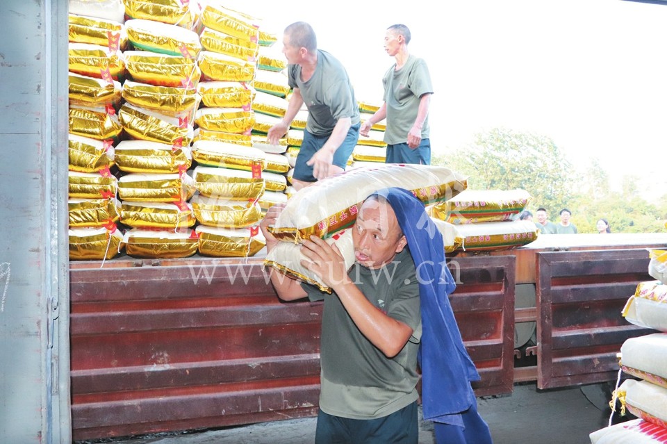 连日高温,随州火车站装卸工坚持奋战,把随州企业的产品搬上货车,发往外地。(随州日报全媒记者冯家园摄)