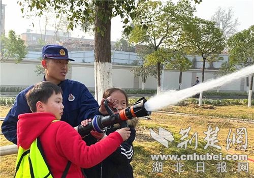 “这是什么?”“这个是用来干嘛的?”“我能摸一下吗?”…… 在消防器材装备展示区,一件件新奇而特别的消防器材装备引起了学生们浓厚的学习兴趣。学生们你一句、我一句,提出了许多想要了解的问题。看着学生们好奇的眼神,消防员都耐心细致地进行解答。同时,消防员还重点为学生们介绍了“消火栓”和“灭火器”的使用方法并进行操作演示,还现场邀请学生们亲自操作体验。