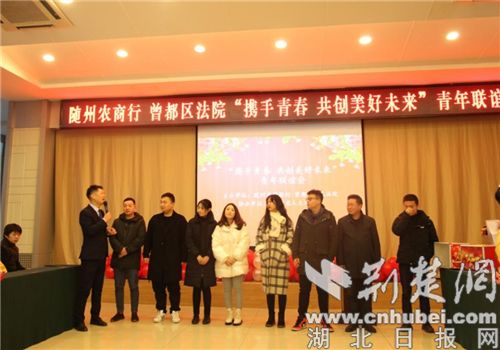 荆楚网客户端—荆楚网消息(通讯员 夏菲阳)为关心青年干警成长,为青年干警搭建交友联谊平台,1月12日下午,随州市曾都区法院与随州农商行联合举办的“携手青春 共创美好未来”青年联谊会在曾都宾馆三楼会议室举行。来自农商行和曾都法院的60余名青年同志参加活动。