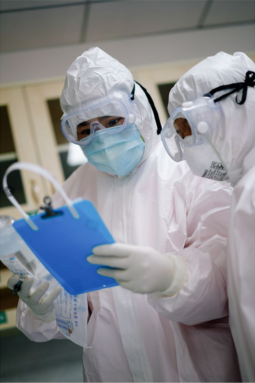 在医院,每个角落里都有这群白衣天使们忙碌的身影:进病房前,洗手、消毒、戴帽子口罩及护目镜、穿上一层又一层的防护服,在穿衣镜前转圈观察,务必保证防护装备规范有效,这是对自己和他人负责;在病房时,不惧危险,与患者近距离接触,打针、喂药、一遍又一遍的测体温,在护理患者的同时,还要给患者温暖的关怀,一同加油打气;出病房后,不怕脏不怕麻烦,继续忙碌着科室里细小繁琐的任务,清理医用垃圾、消毒、配药、整合病患资料……