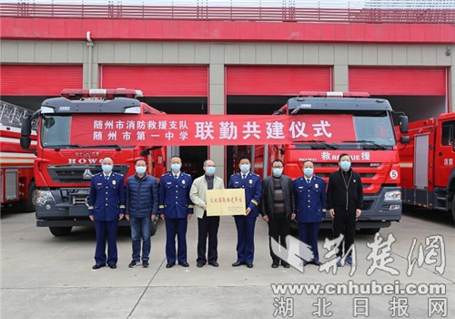 据介绍,随州市消防救援支队与随州一中就联勤共建、友好合作、携手发展等工作达成一致,并签订了队校联勤共建协议。聘用了随州一中专业的体能教员作为消防救援队伍规范化训练指导老师,同时确定一批指战员为随州一中的消防安全校外辅导员。
