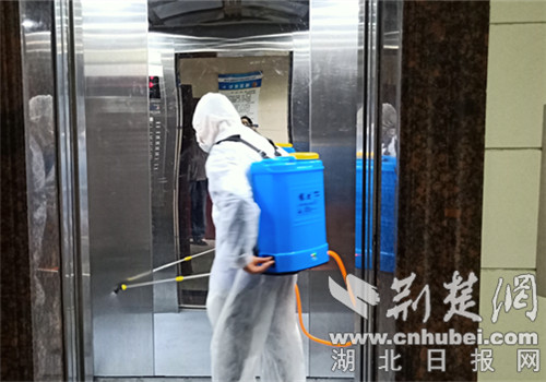电梯消毒。通讯员供图