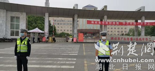 根据省教育厅的统一安排,广水市一中、正路、实高、二中、育才、益众、文华、四中等8所高中毕业班4800余名高三学子于5月6日开学复课。为做好疫情防护措施,结合各校学生不同时间段入校的情况,按照交警大队的工作部署,当日7时许,应山、广水、长岭交警中队组织警力深入所辖学校,设置安全防护带、安全提示牌,维护交通秩序,指挥疏导交通,保障广大学生安全、有序、顺利入校。