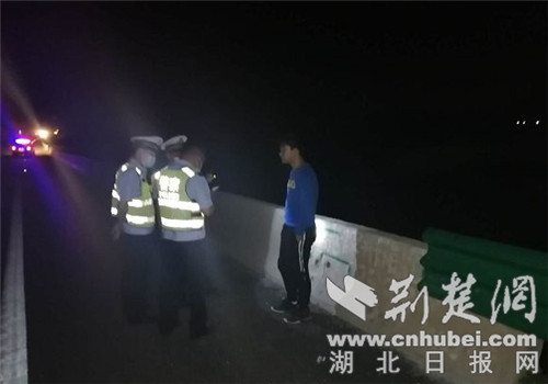 5月12日20时30分,例行开展夜间巡查的广水交警大队蔡河中队民警驾驶警车行至107国道广水京桥村桥头处时,发现桥中边旁一名男孩走来走去,任由过往车辆呼啸而过。