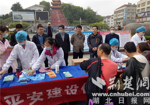 荆楚网(湖北日报网)讯(通讯员 刘小斌)4月22日,广水市卫生健康局、印台医院在印台广场联合开展以“平安建设宣传”为主题的义诊咨询活动,向广大群众提供健康咨询义诊服务。