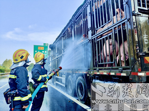 “真是太感谢你们了!如果没得到及时降温,这一车猪将会因中暑全部死掉,将会造成近50万经济损失。”据车主介绍,该车共拉载生猪95头,从吉林出发运往随州,行至许广高速封江路段时车辆发生故障,无法继续行驶,随即拨打119求助。