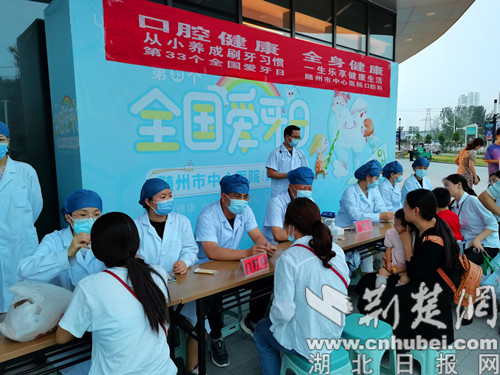 荆楚网(湖北日报网)讯(通讯员曾凯、徐梅)9月20日是第33个全国爱牙日,今年全国爱牙日的活动主题是“口腔健康,全身健康”,旨在普及口腔卫生保健知识,推动全社会关注口腔卫生及健康。9月17日下午,随州市中心医院组织专家团队在吾悦广场进行口腔卫生宣教及义诊活动。