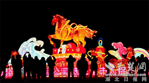 沿湖漫步,“八骏贺岁”主题灯组气势如虹,寓意马到成功、奋楫争先,成为游客们合影的“C位”打卡点;“飞天火凤凰”灯组展翅翱翔,象征广水腾飞、前程似锦;“新春福字”“吉祥锦鲤”花灯相映成趣,传递着马年吉祥、阖家安康的祈愿。各式花灯错落有致,将广水的夜色装点得如梦如幻。