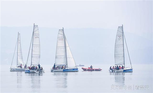 东湖湖心岛畔,波光粼粼的水面上,迎来了一艘艘崭新的白色帆船。今日,武汉军运会帆船项目测试赛暨2019年全国青年帆船锦标赛在此拉开帷幕。这是武汉军运会38场测试赛的第4场。