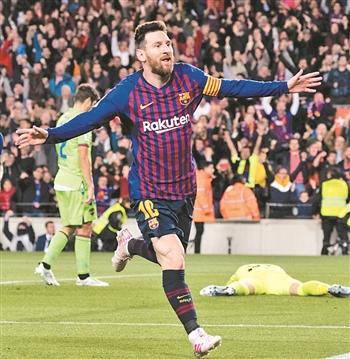 梅西庆祝进球。新华社发(胡安·戈萨摄)