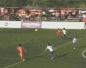 在那场比赛中,邝兆镭在后场得球后,面对身材高大的对手直接将球挑向前方,和贝尔2014年国王杯那次外道超车传给3秒后的自己如出一辙,在利用速度反超对手面对门将形成单刀后,邝兆镭不停球第一脚劲射远角破门,打了门将一个措手不及。