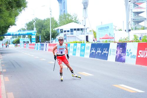 池春雪在国际雪联滑轮世界杯的长距离比赛中。供图
