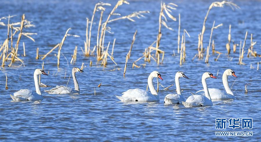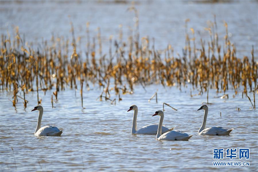 这是3月12日在内蒙古鄂尔多斯市达拉特旗境内的黄河沿线湿地拍摄的天鹅。 随着天气转暖,冰雪消融,内蒙古鄂尔多斯市达拉特旗境内黄河沿线湿地中栖息的天鹅成为早春时节一道亮丽的风景线。 新华社记者 彭源 摄
