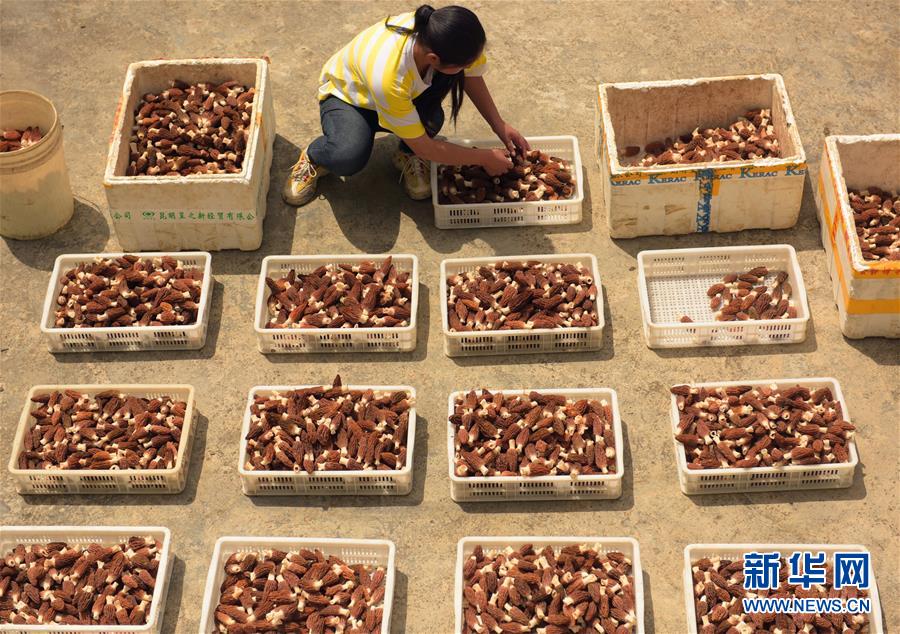 4月16日,在湖北省宣恩县张官铺食用菌专业合作社,负责人陈威对羊肚菌进行分级。 今年30岁的陈威是湖北省宣恩县晓关侗族乡张官村人,2013年大学毕业后在浙江从事室内设计工作。2015年陈威返乡创业,成立张官铺食用菌专业合作社,专业种植羊肚菌。他研究羊肚菌生长习性,提升种植管理技术,种植基地由最初的10多亩发展到100多亩,带动当地50多户村民增收。 新华社发(王俊 摄)