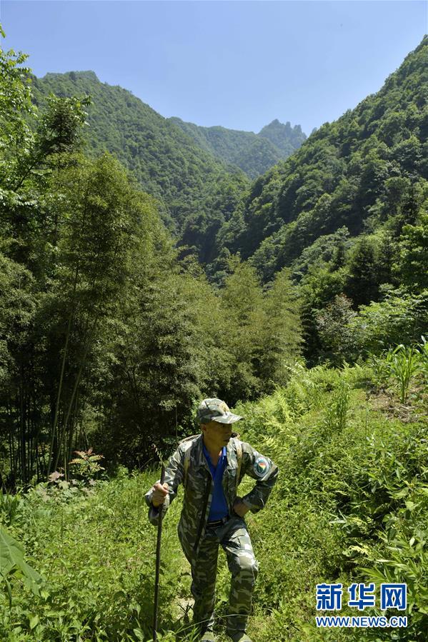 6月4日,张永祥在七姊妹山下进行日常巡山。新华社发(宋文 摄)
