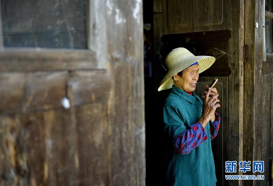 6月4日,汤金芝与山外的孩子通电话。新华社发(宋文 摄)