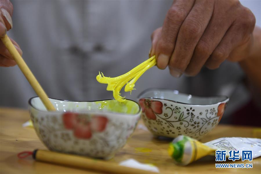 戴春富在捏花瓣(6月18日摄)。 新华社记者 季春鹏 摄