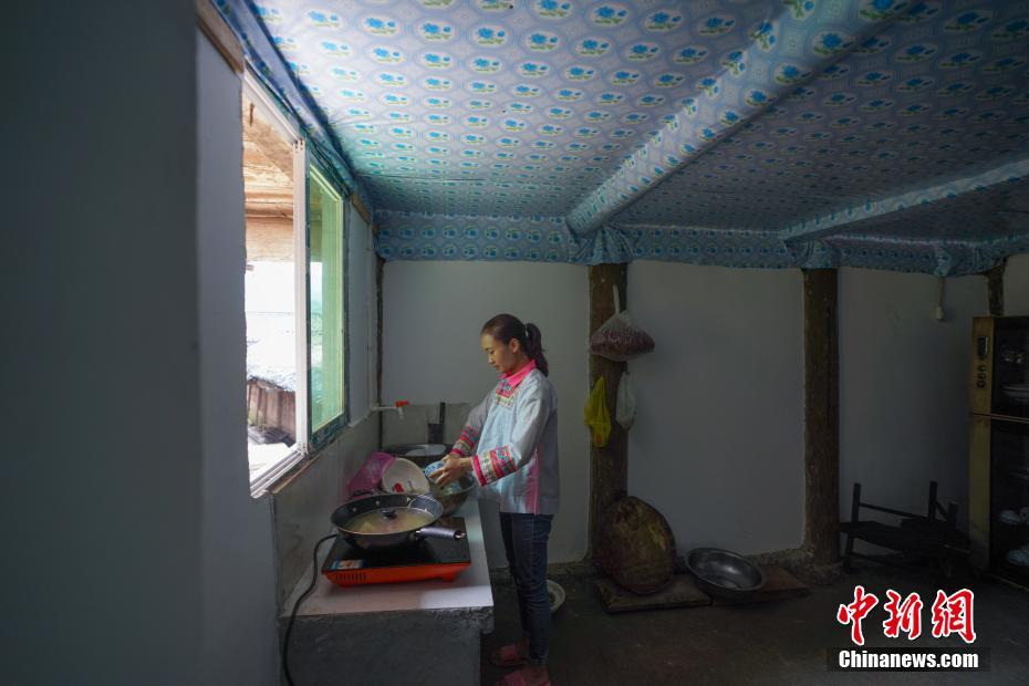 8月14日,贵州榕江计划村苗族妇女李燕芬在改造后的厨房里洗碗。贵州省黔东南苗族侗族自治州榕江县是一个以苗、侗、水、瑶为主体民族的国家级贫困县。2019年以来,榕江借助国家大力推动“危房改造”的东风,结合东西部扶贫协作等力量,打响“人畜分居”攻坚战,帮助当地少数民族民众改造人畜混居式木质结构房屋,结束了当地民众长期以来“人畜同居”的生活方式。目前,榕江县已摸底“人畜混居”家庭户8066户,已改造2000多户,预计2019年10月底前完成改造工作,以改善民众居住条件和环境,保障民众基本卫生健康。中新社记者 贺俊怡 摄